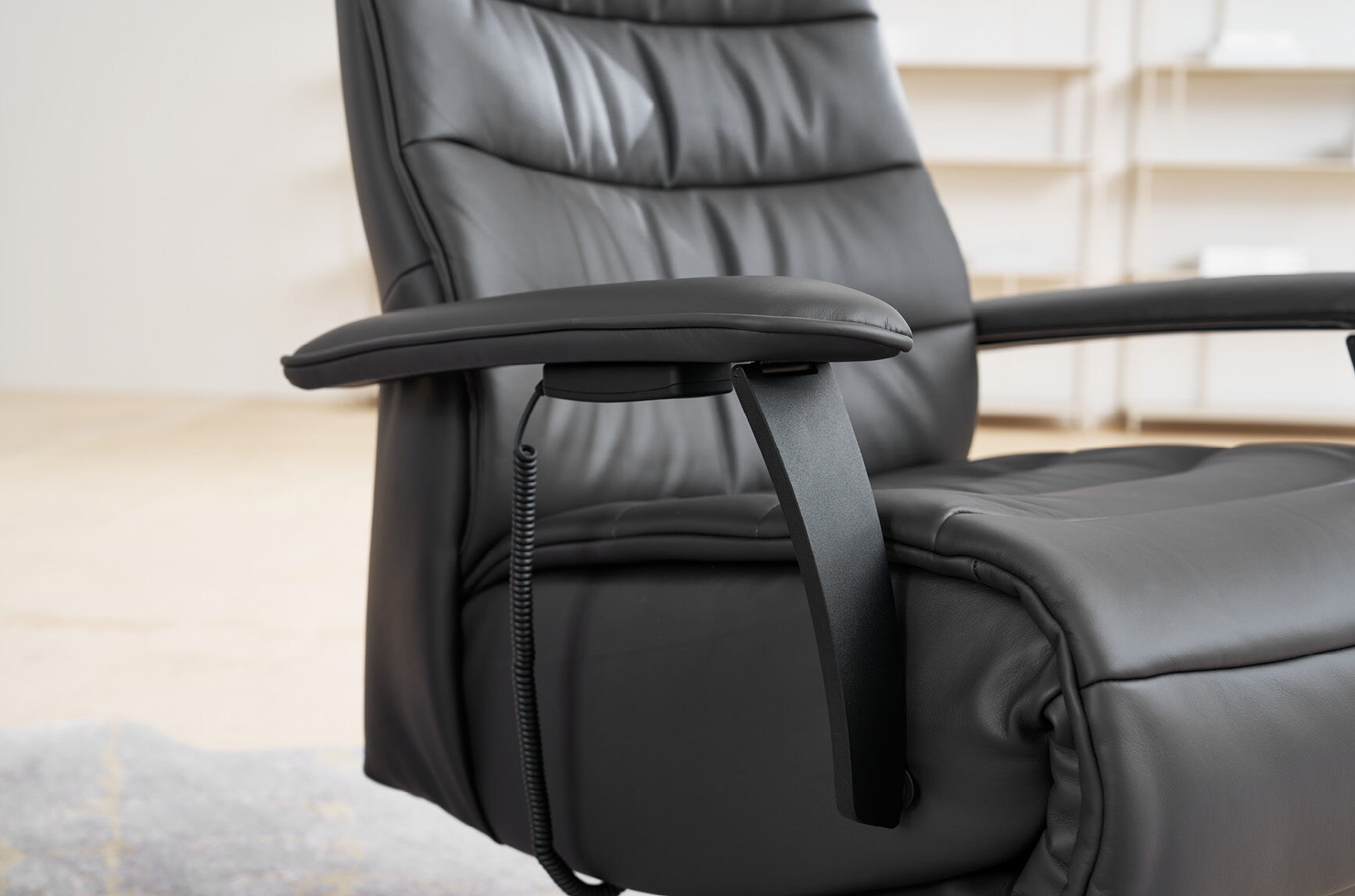 Durchdachte elektrische Funktionen sorgen darüber hinaus für besondere Komfortmomente. Die elektrische Aufstehhilfe ist nahezu unsichtbar integriert, was den Sessel besonders für eine stilbewusste Zielgruppe interessant macht, welche sich für alltagstaugliche Funktionsmöbel interessiert, aber keine Kompromisse bei Optik und Design eingehen möchte.