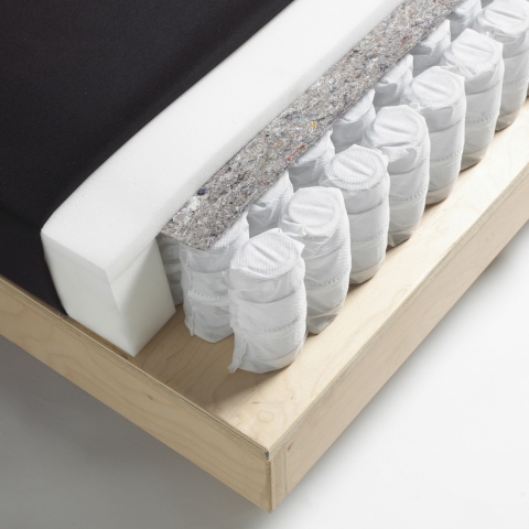Comme sur un lit traditionnel un matelas est posé sur le caisson du Boxspring. Ici aussi il y’a d’énormes différences dans la qualité de fabrication. Idéalement, le matelas devrait contenir des ressorts qui sont exactement ajusté au Boxspring. Il est préférable, encore une fois, que l’intérieur du matelas soit composé de ressorts ensachés. Seul ce type de ressorts reparti le poids sur toute la surface et offre ainsi un confort optimal. Un nombre élevé de ressorts contenus dans un matelas est certainement un signe de qualité, mais pas uniquement. Les autres composants tels que le type de ressort, les mousses utilisés pour caller les ressorts peuvent aussi avoir un grand impact sur le confort.