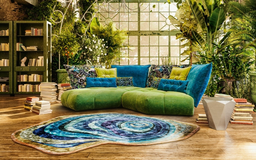 Matilda ist ein, auf Fünfecken beruhendes, modulares Sofasystem. Die großen, weichen Rückenkissen, der kunstvoll bedruckte Velours sowie die punktuellen Einzüge geben Matilda ihr sichtbar pralles Selbstbewusstsein. Bei der Polsterung macht Matilda genauso wenig Kompromisse. Anpassungsfähig ist sie wiederum, was die persönlichen Ansprüche betrifft: Die Elemente können kombiniert, erweitert und mit Rückenkissen bestückt werden. Diese sind abziehbar. Daher kann Matilda auch saisonal ihr Gewand wechseln und sich so immer wieder neu erfinden.