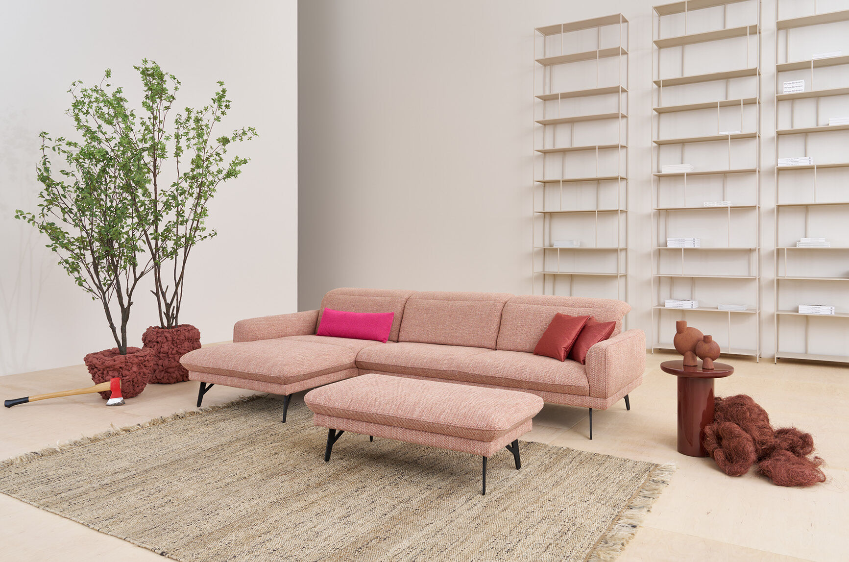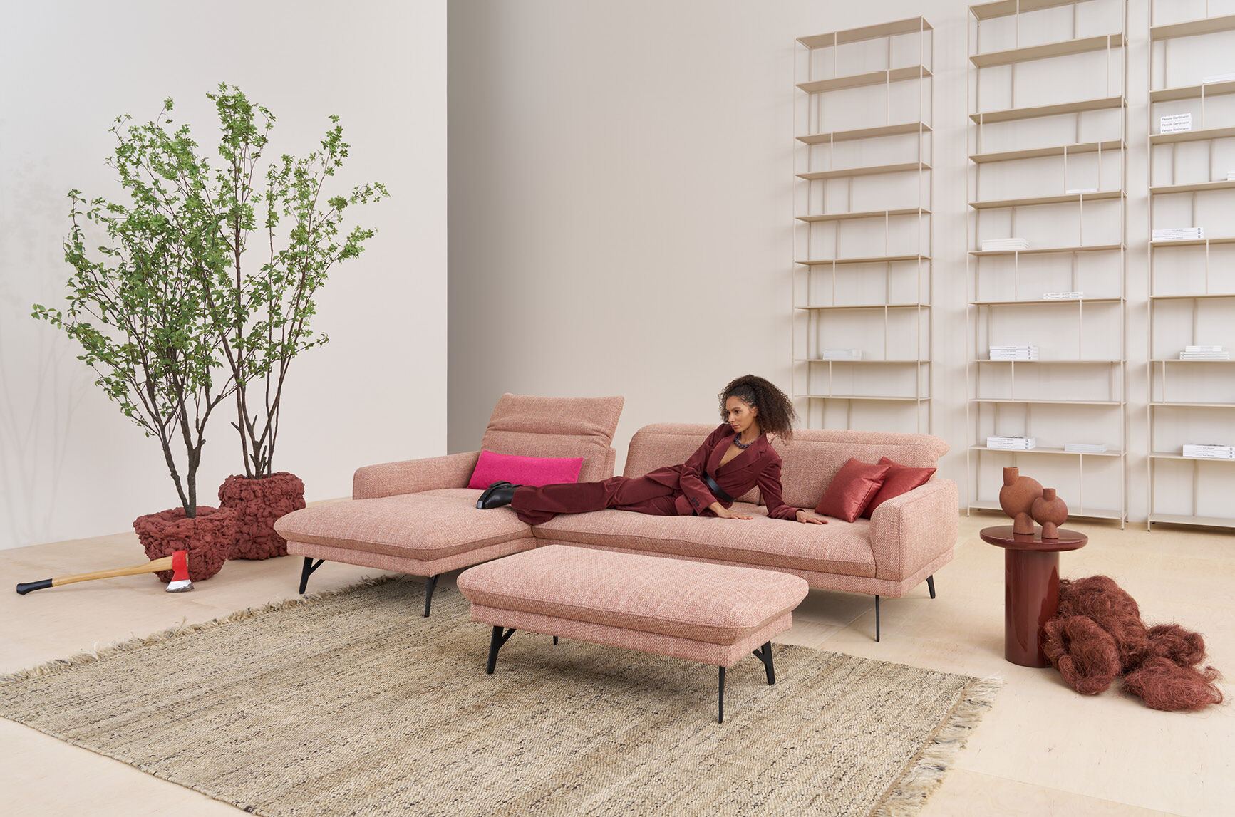 Afin de répondre aux différentes exigences et situations d'habitation, PROMOTION 1560 s'adapte facilement aux besoins personnels et offre de nombreuses possibilités de combinaison. Tous les éléments sont parfaits pour des moments de détente exclusifs. Créez votre oasis de détente individuelle dans votre salon, qui s'intégrera parfaitement à votre intérieur grâce à notre vaste collection de tissus et de cuirs.