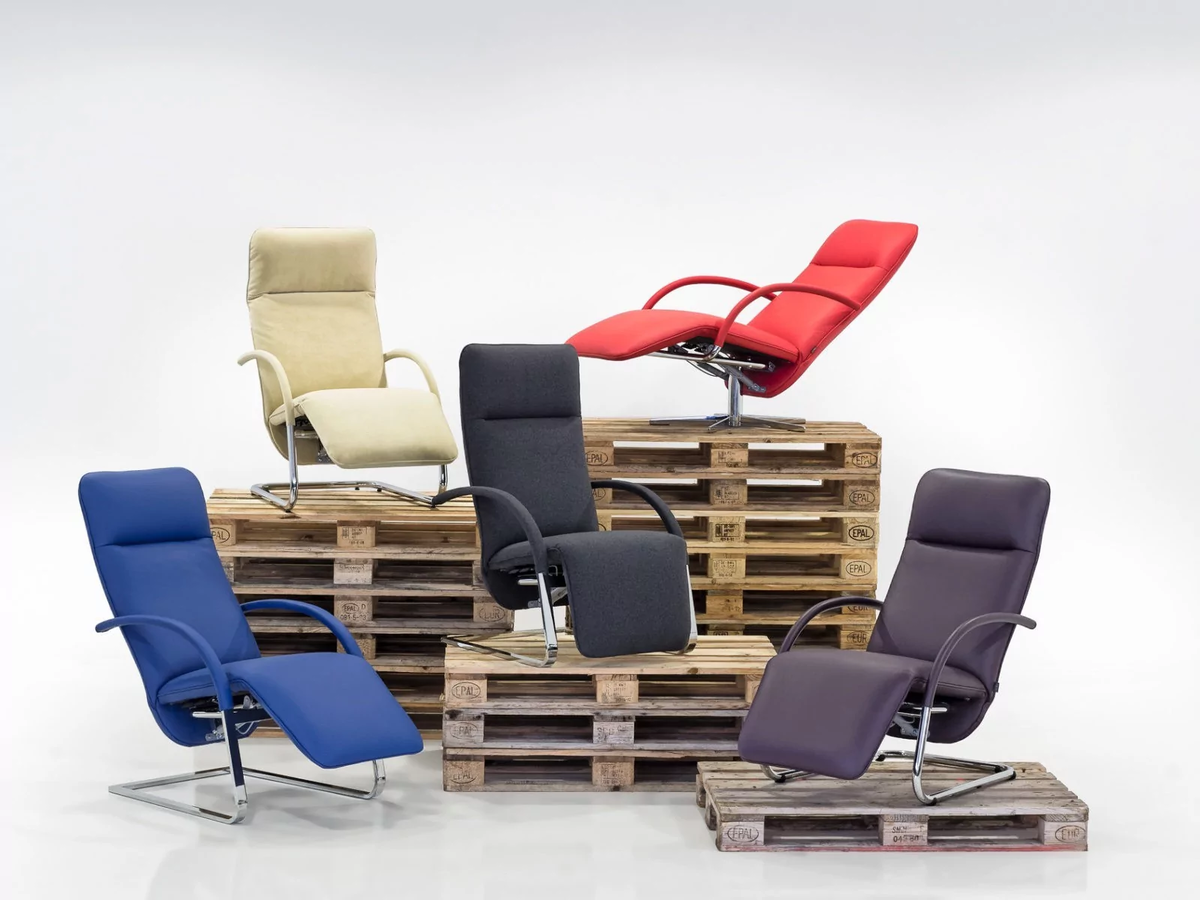 La transformation s'effectue en continu et sans effort grâce à des vérins à gaz, offrant ainsi à chaque utilisateur un confort sur mesure. FINO est disponible en version à piètement luge avec structure en tube rond ou en acier plat, en finition chromée brillante ou chromée mate.
